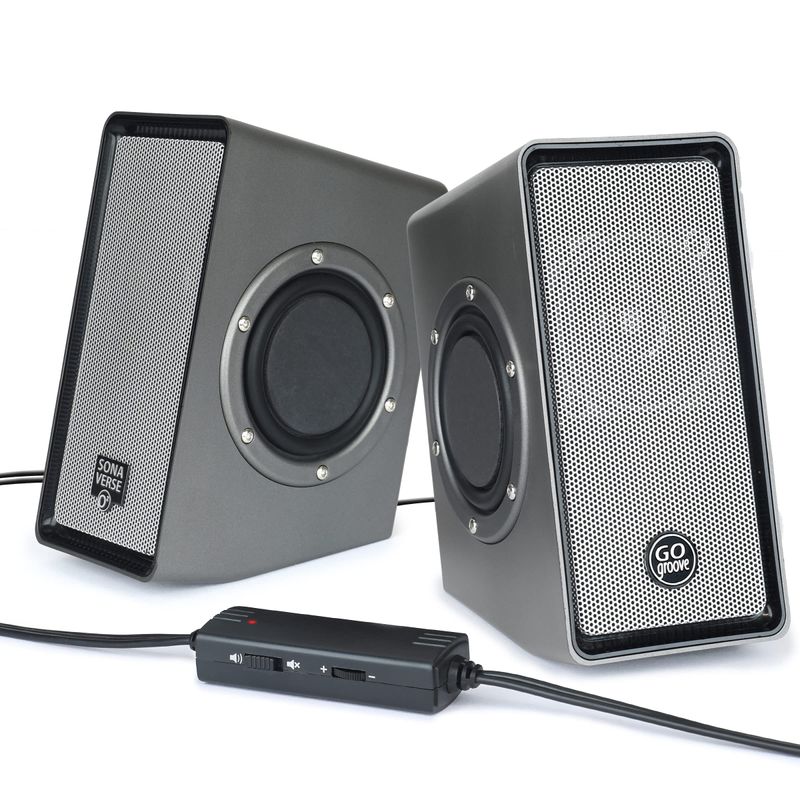 GOGROOVE SONAVERSE O2 - ALTAVOCES DE ESCRITORIO ALIMENTADOS POR USB CON ALTAVOCES DE GRAVES PASIVOS DUALES, ESFERA DE VOLUMEN INCORPORADA, DISEñO COMPACTO ELEGANTE PARA ESCRITORIOS PEQUEñOS Y PC