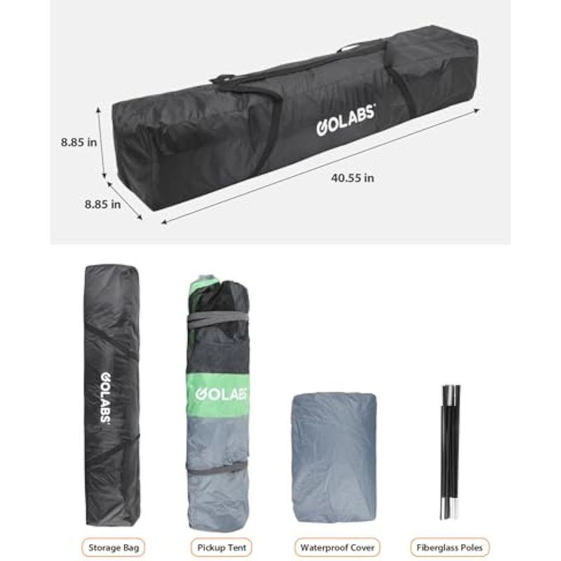 Golabs Truck Bed Tent, Waterproof PU2000mm Pop-up Pickup Tent for Easy Setup, Fits Most of Truck, 2-Person Portable with Extra Rainfly Cover for Camping & Outdoor, Includes Storage Bag, Green
