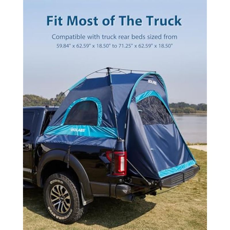 GOLABS TRUCK BED TENT FOR 5.5-6.5 FT BED, PRE-ASSEMBLED DESIGN FOR 5-MINUTE EASY SETUP, WATERPROOF PU2000MM, 2-PERSON PORTABLE WITH EXTRA RAINFLY COVER FOR CAMPING & OUTDOOR, INCLUDES STORAGE BAG