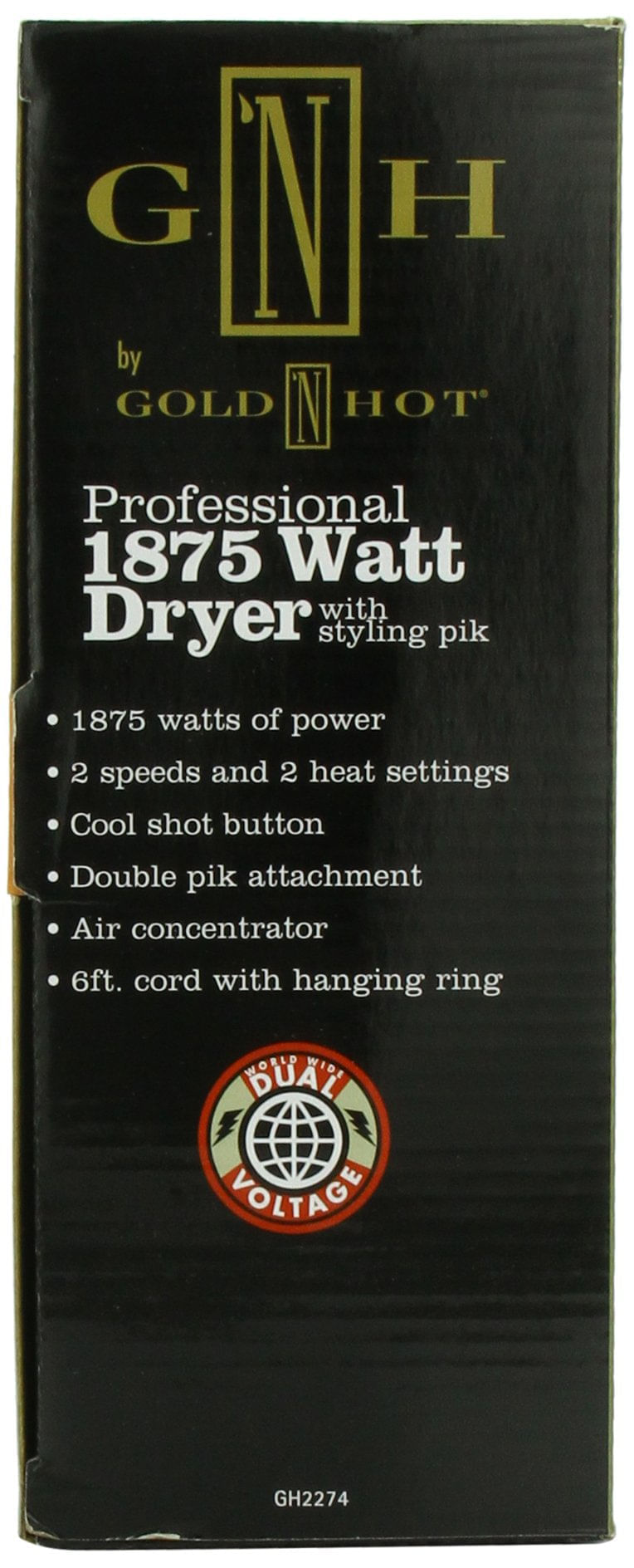 BELLEZA Y SALUDCUIDADO PERSONALSECADORESGold N Hot Secador profesional de 1875 vatios con peinado Pik (GO-GH2274)