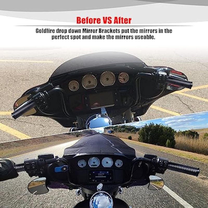 GOLDFIRE SOPORTES DE CAíDA PARA ESPEJO DE MOTOCICLETA, CARENADO AJUSTABLE, KIT DE REUBICACIóN DE ESPEJO DE MURCIéLAGO PARA HARLEY TOURING STREET GLIDE ELECTRA GLIDE TRI GLIDE CVO BAGGER BATWING