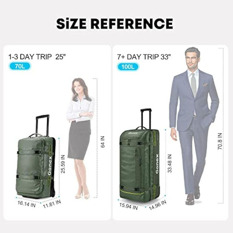 Gonex - Bolsa de viaje con ruedas de 70 L, impermeable, con ruedas, 22 pulgadas, 26 pulgadas, 30