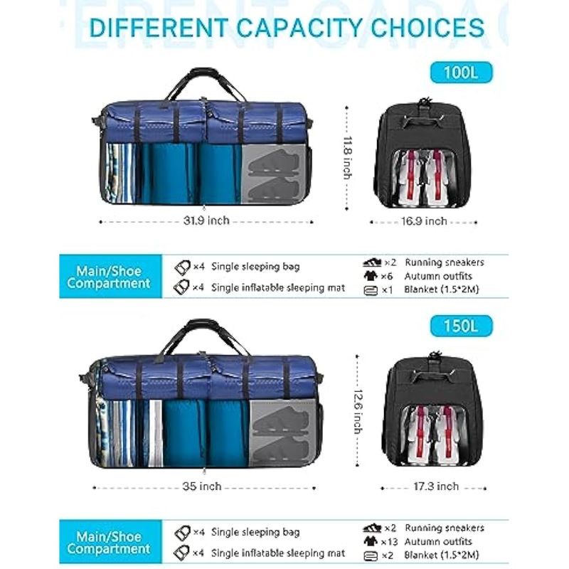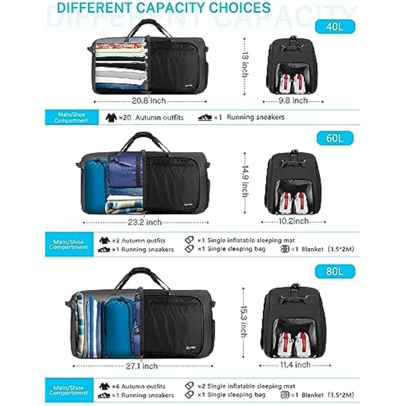 Gonex Bolsa de viaje plegable grande de 40 L, 60 L, 80 L, 100 L, 150 L, con compartimento para