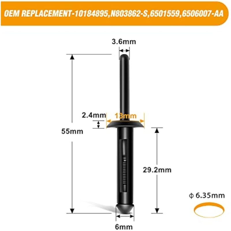 GOOACC 50 remaches ciegos de nailon con orificios de 1/4 de pulgada, para guardabarros, parachoques
