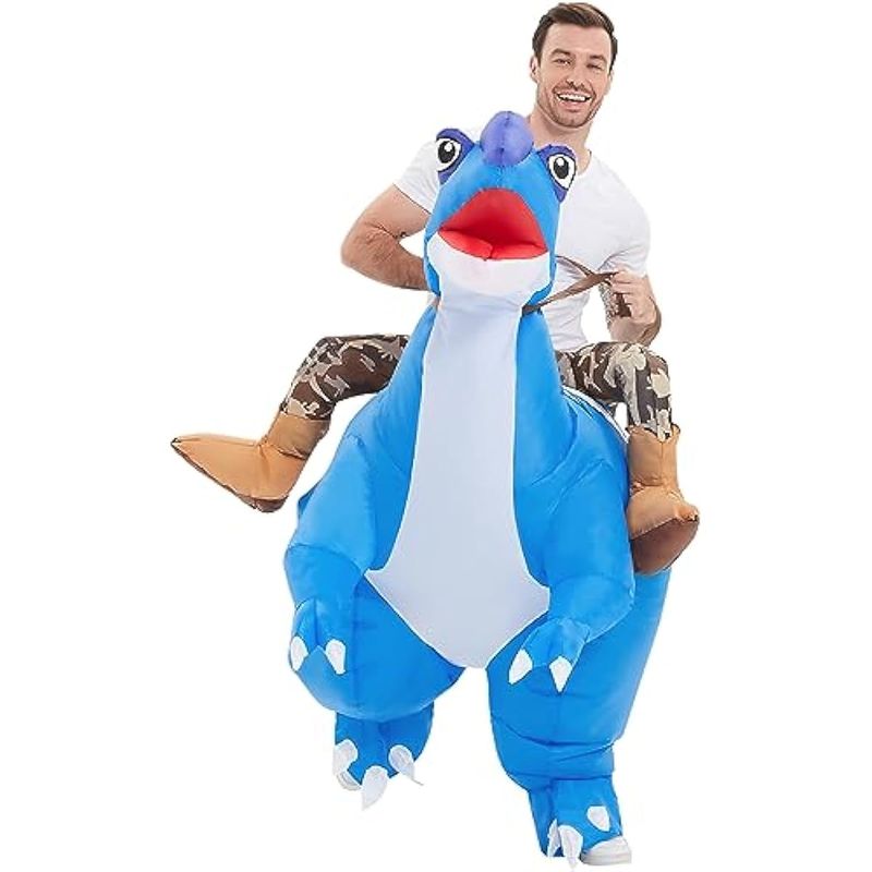 GOOSH Disfraz inflable de dinosaurio para adulto, disfraz de dinosaurio azul para Halloween