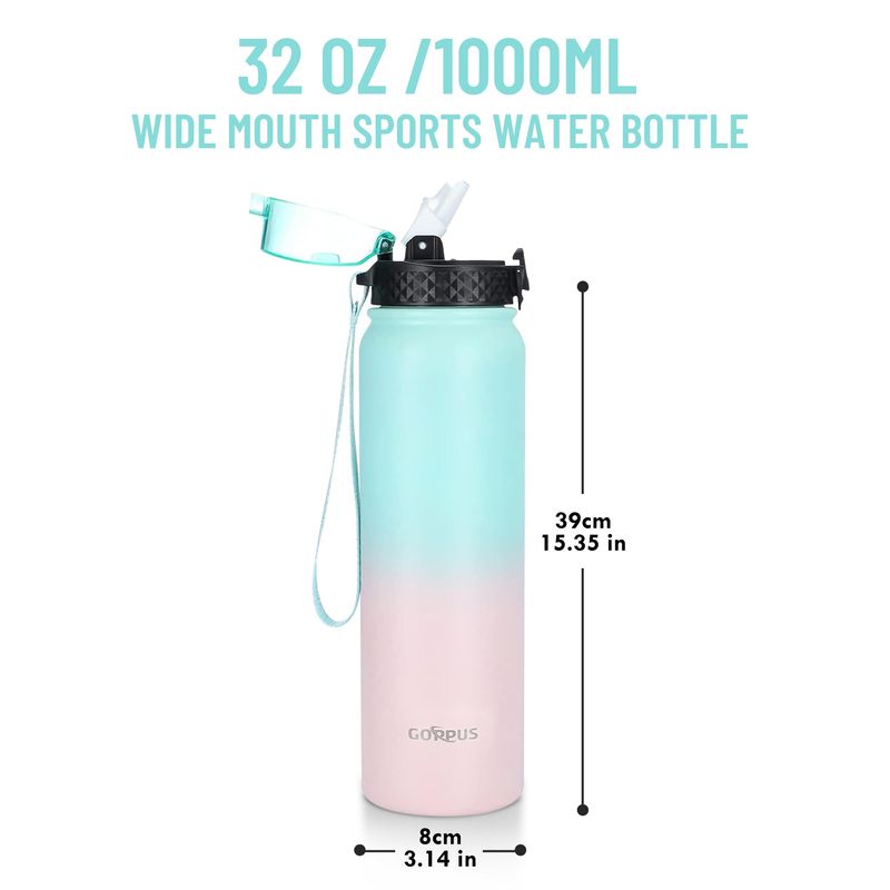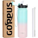 GOPPUS Botella de agua de acero inoxidable aislada de 20 onzas con tapa con pajilla, reutilizable, a