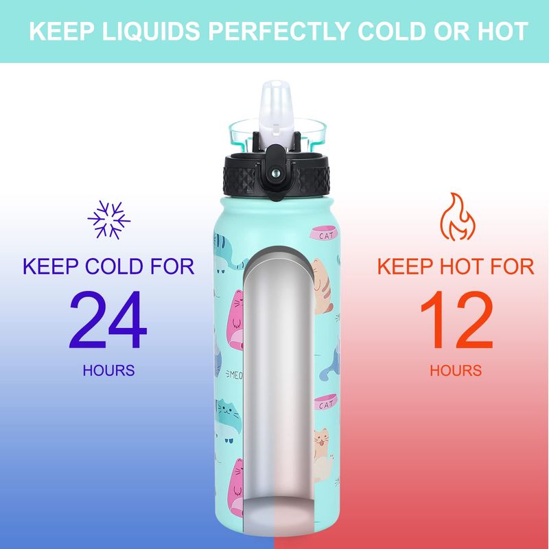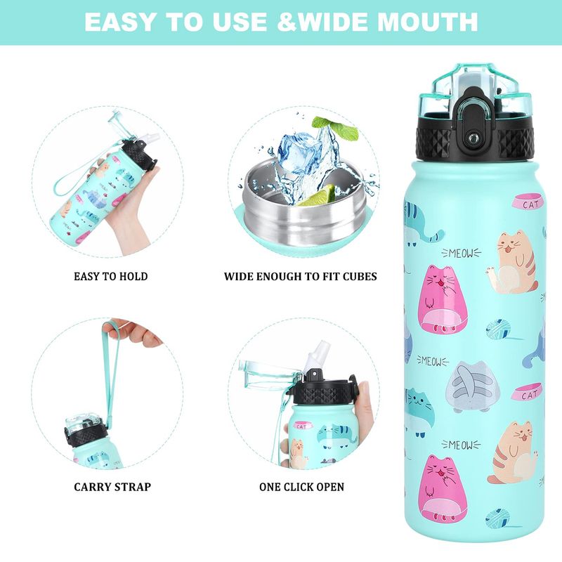 JARDÍNCAMPINGTERMOSGOPPUS Botella de agua de acero inoxidable aislada de 20 onzas con tapa con pajilla, reutilizable, a