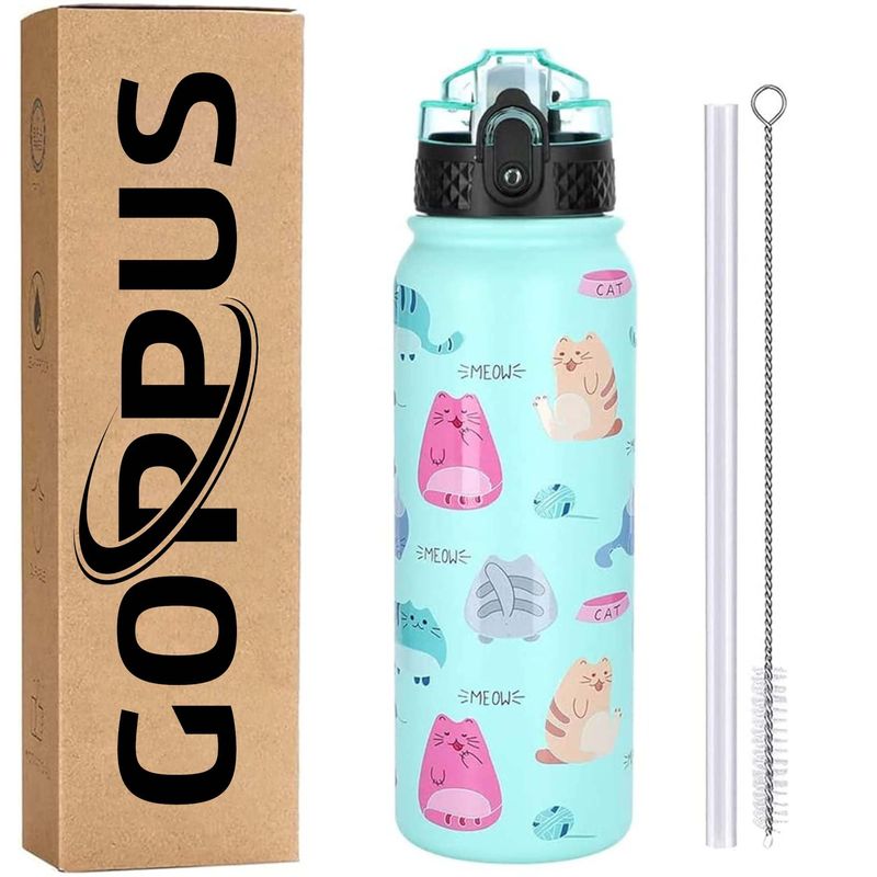GOPPUS Botella de agua de acero inoxidable aislada de 20 onzas con tapa con pajilla, reutilizable, a