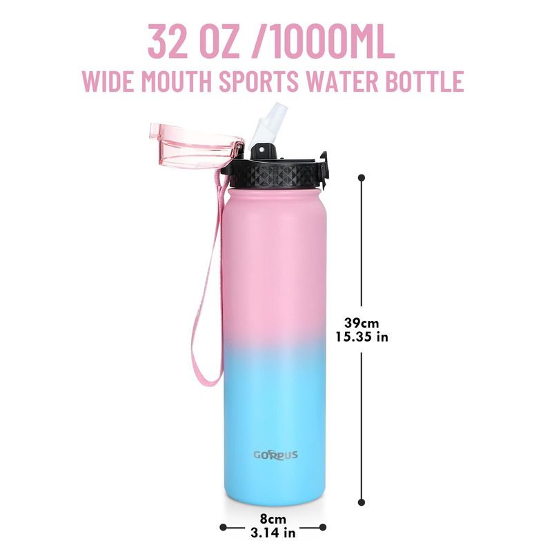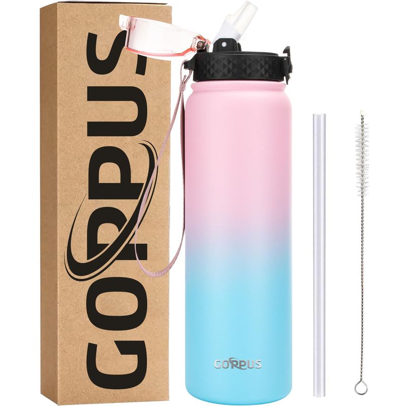GOPPUS Botella de agua de acero inoxidable aislada de 20 onzas con tapa con pajilla, reutilizable, a