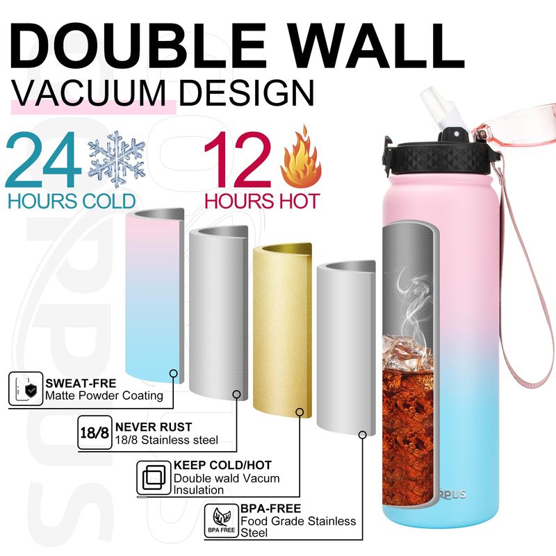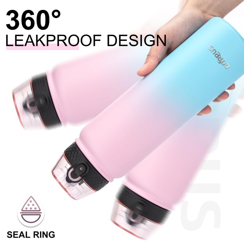 JARDÍNCAMPINGTERMOSGOPPUS Botella de agua de acero inoxidable aislada de 20 onzas con tapa con pajilla, reutilizable, a