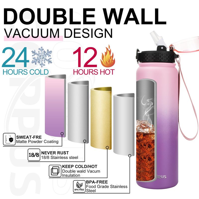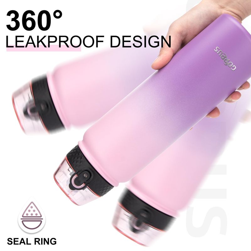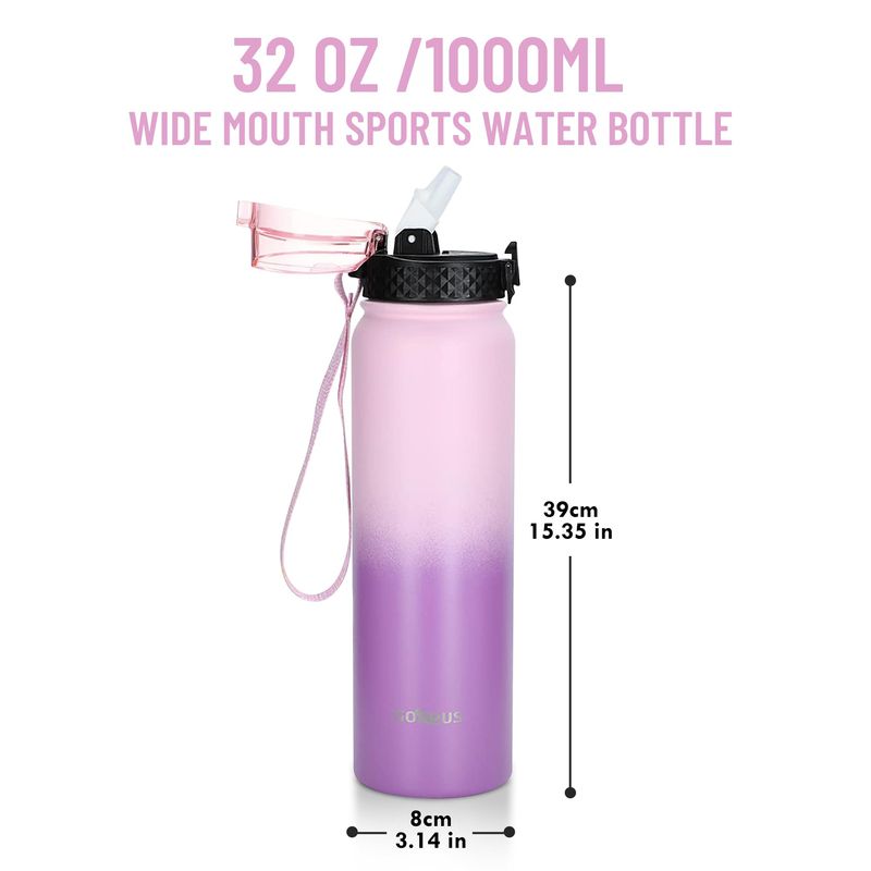 JARDÍNCAMPINGTERMOSGOPPUS Botella de agua de acero inoxidable aislada de 20 onzas con tapa con pajilla, reutilizable, a