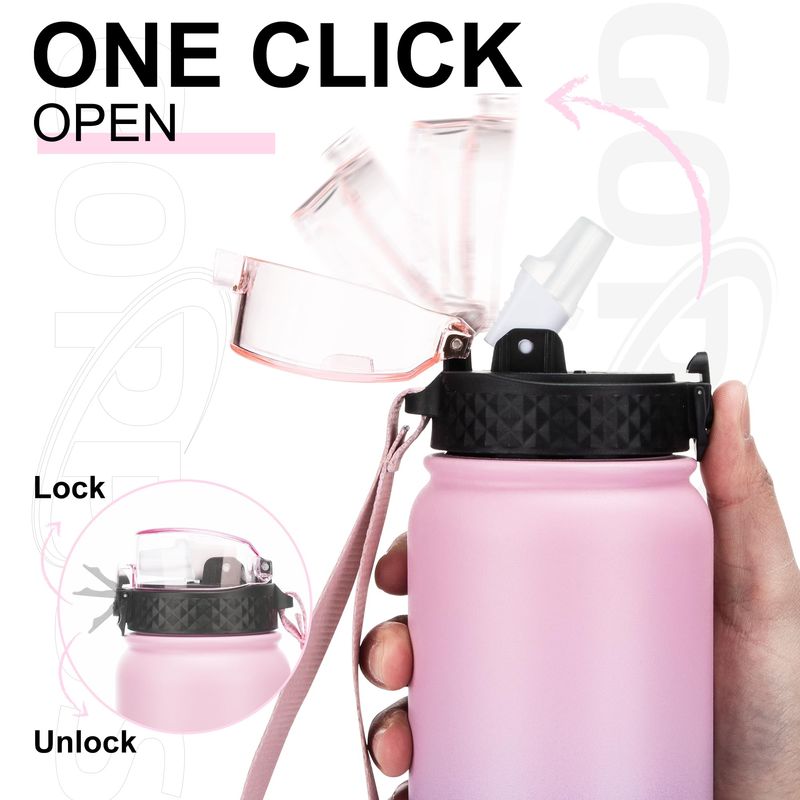 GOPPUS Botella de agua de acero inoxidable aislada de 20 onzas con tapa con pajilla, reutilizable, a