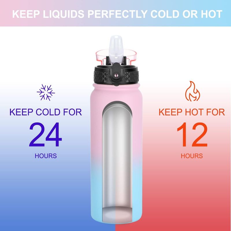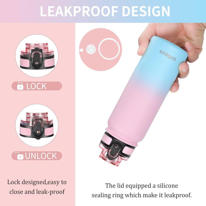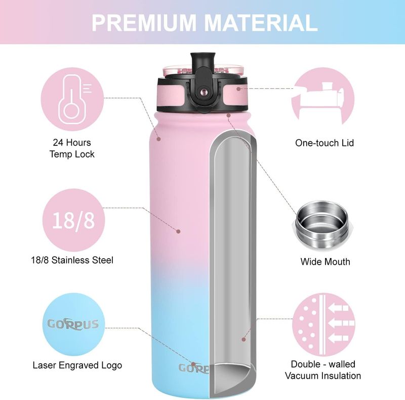 JARDÍNCAMPINGTERMOSGOPPUS Botella de agua de acero inoxidable aislada de 20 onzas con tapa con pajilla, reutilizable, a
