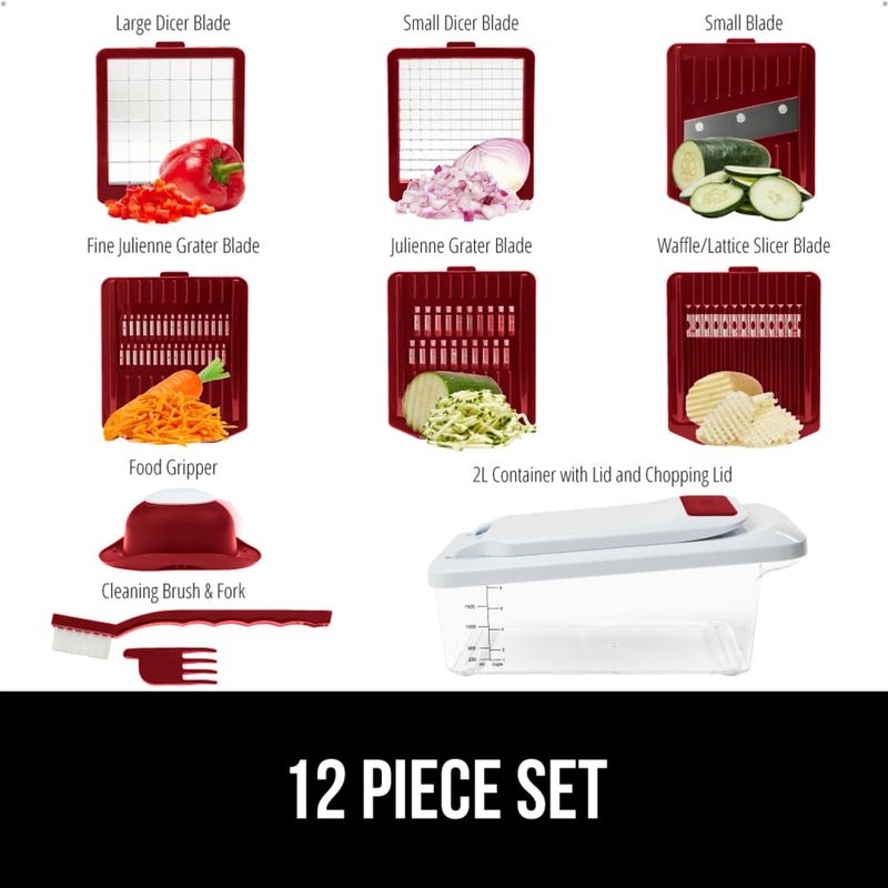 Gorilla Grip Picador de verduras 12 en 1 resistente, cortador de mandolina de hoja intercambiable,