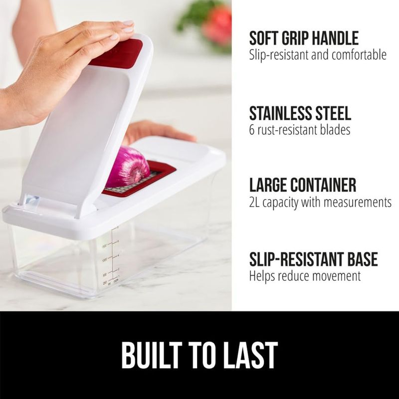 HOGARBAZARUTENSILIOS DE COCINAGorilla Grip Picador de verduras 12 en 1 resistente, cortador de mandolina de hoja intercambiable,