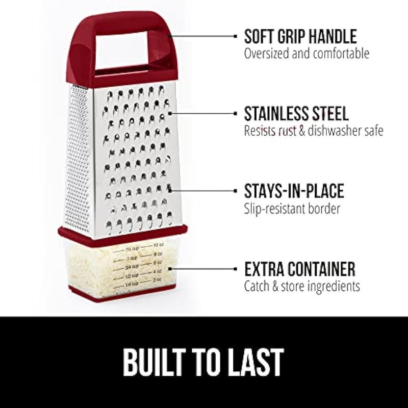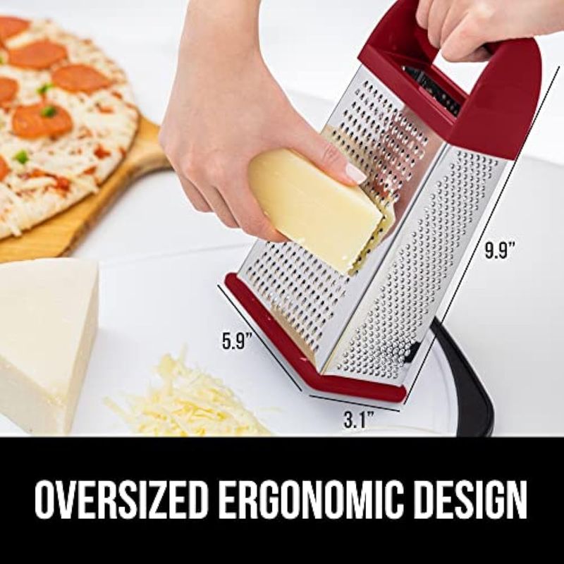 Gorilla Grip Rallador de queso de acero inoxidable de 4 lados 100% libre de BPA, rallador de caja XL
