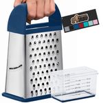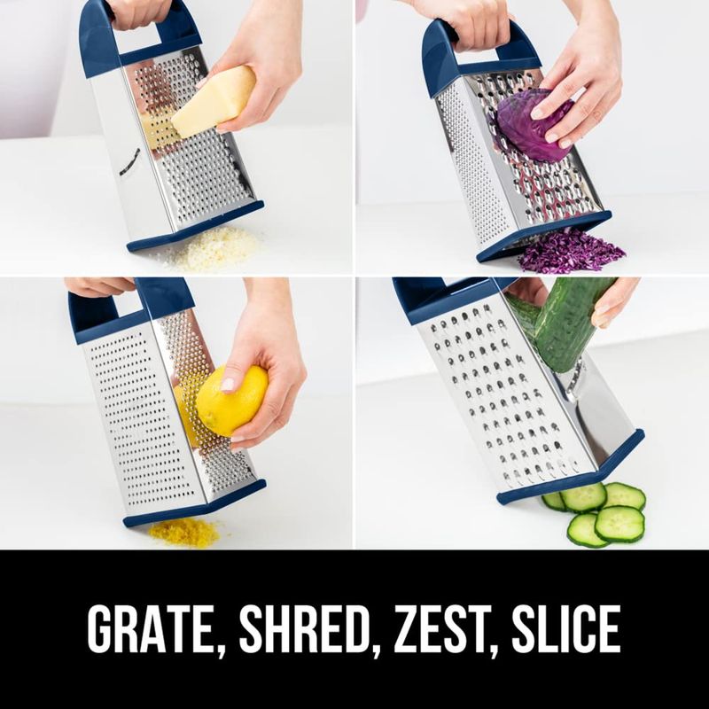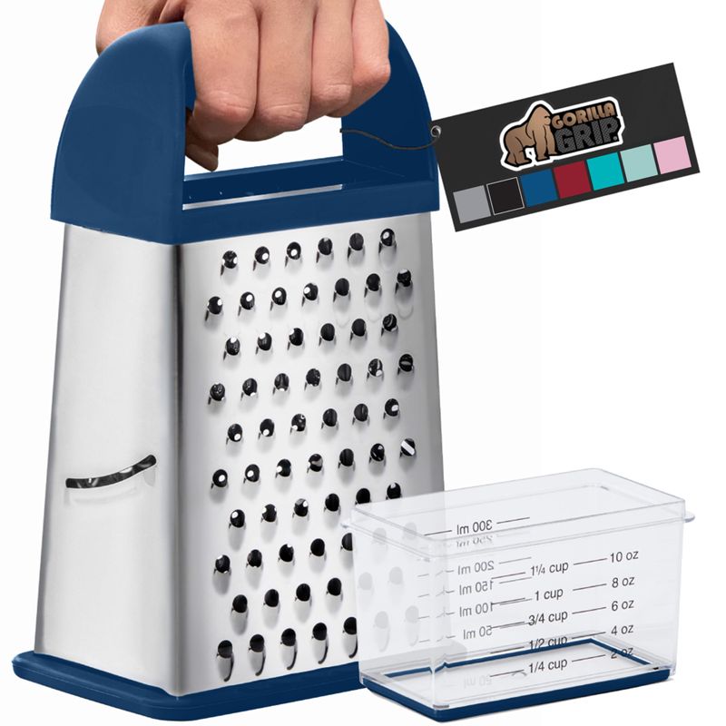 Gorilla Grip Rallador de queso de acero inoxidable de 4 lados 100% libre de BPA, rallador de caja XL