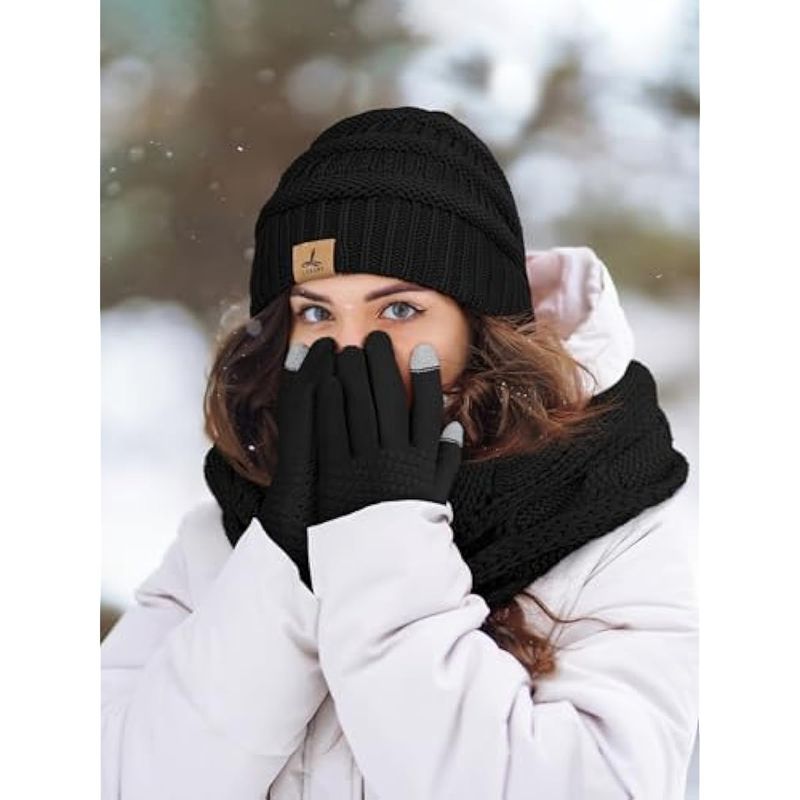HOGARINDUMENTARIA Y ACCESORIOSGorro de invierno, bufanda, guantes de punto de forro polar cálido, guantes de pantalla táctil,