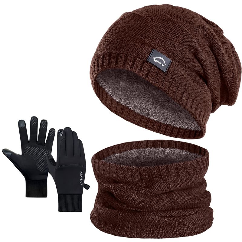 Gorro de invierno con bufanda para pantalla táctil, para hombres y mujeres, gorro de esquí, - Pardo