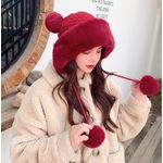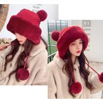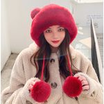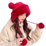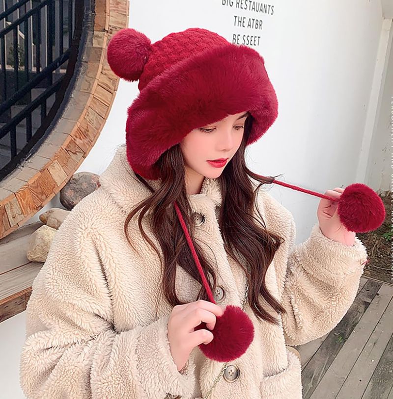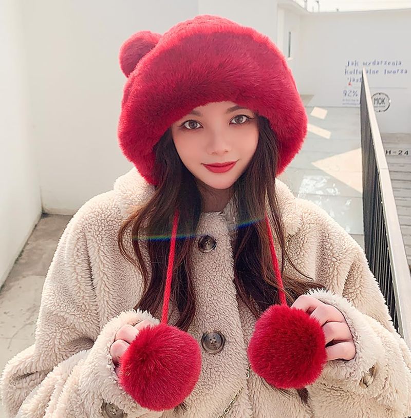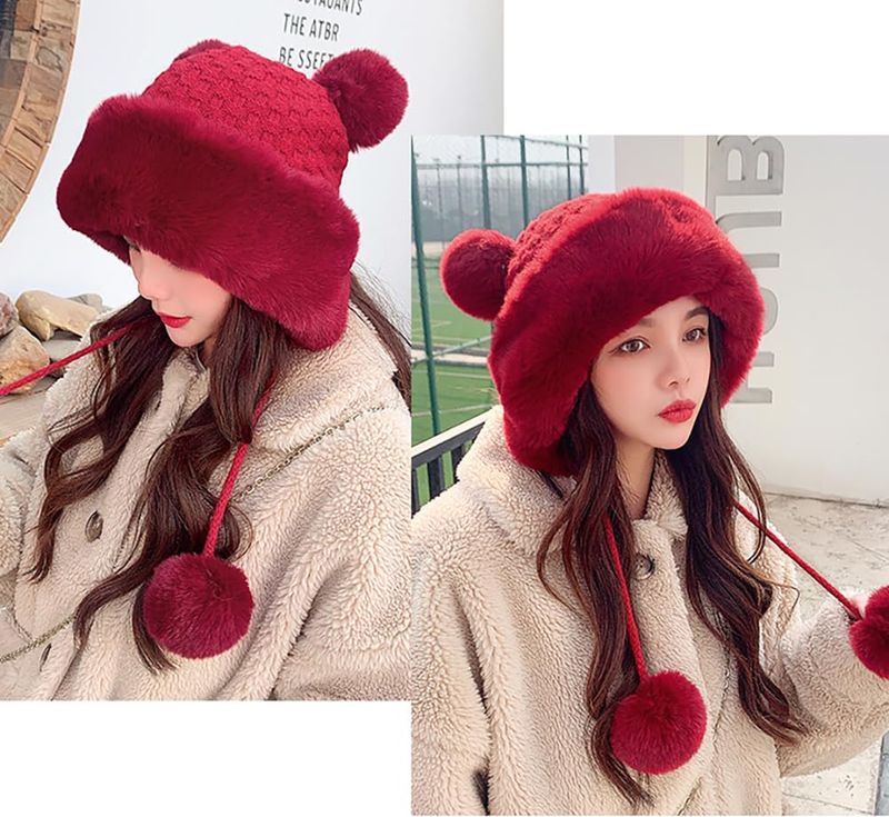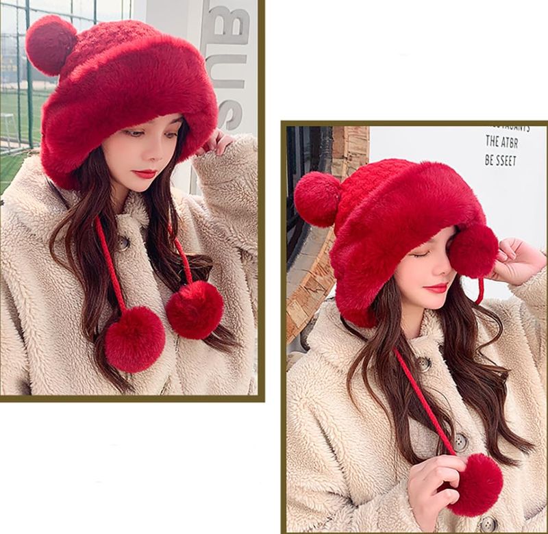 HOGARINDUMENTARIA Y ACCESORIOSGorro de invierno con pompón para mujer, de punto esponjoso, de piel sintética, de ganchillo, para