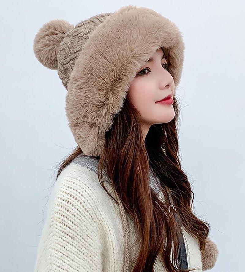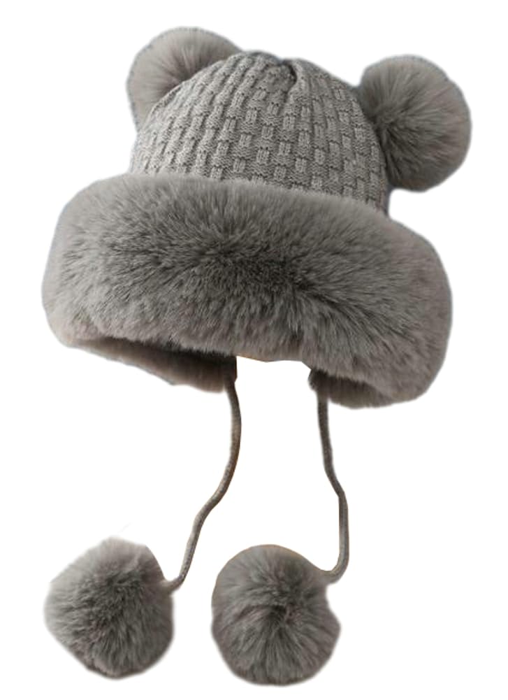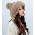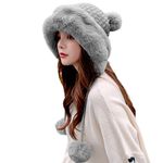 HOGARINDUMENTARIA Y ACCESORIOSGorro de invierno con pompón para mujer, de punto esponjoso, de piel sintética, de ganchillo, para