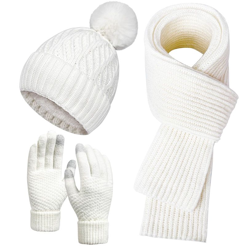 HOGARINDUMENTARIA Y ACCESORIOSGorro de punto cálido para invierno, guantes para pantalla táctil, conjunto de bufanda larga con