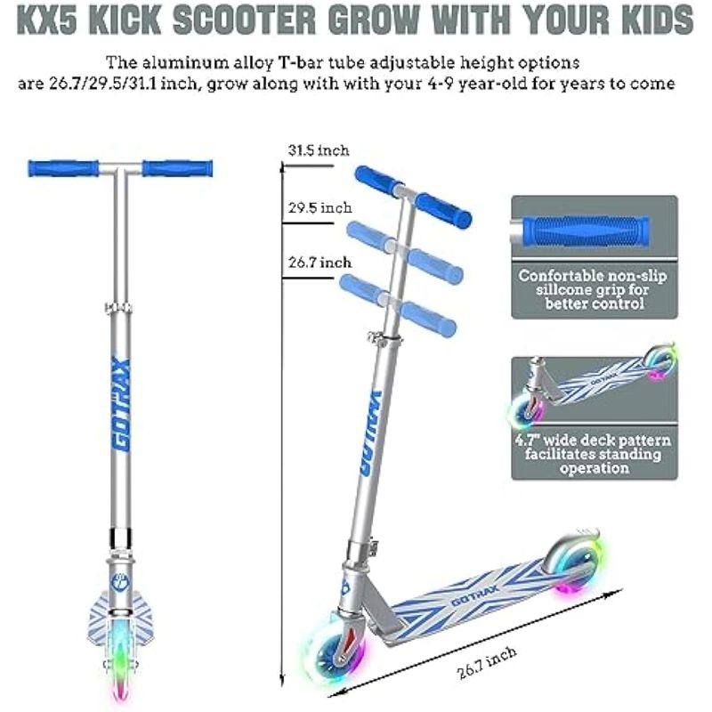GOTRAX KX5/KX6 KICK SCOOTER, 3 ADJUSTABLE HEIGHTS AND 5"/6" FLASHING WHEELS KIDS SCOOTER, LIGHTWEIGHT ALUMINUM ALLOY SCOOTER FOR KIDS BOYS GIRLS AGE OF 4-10