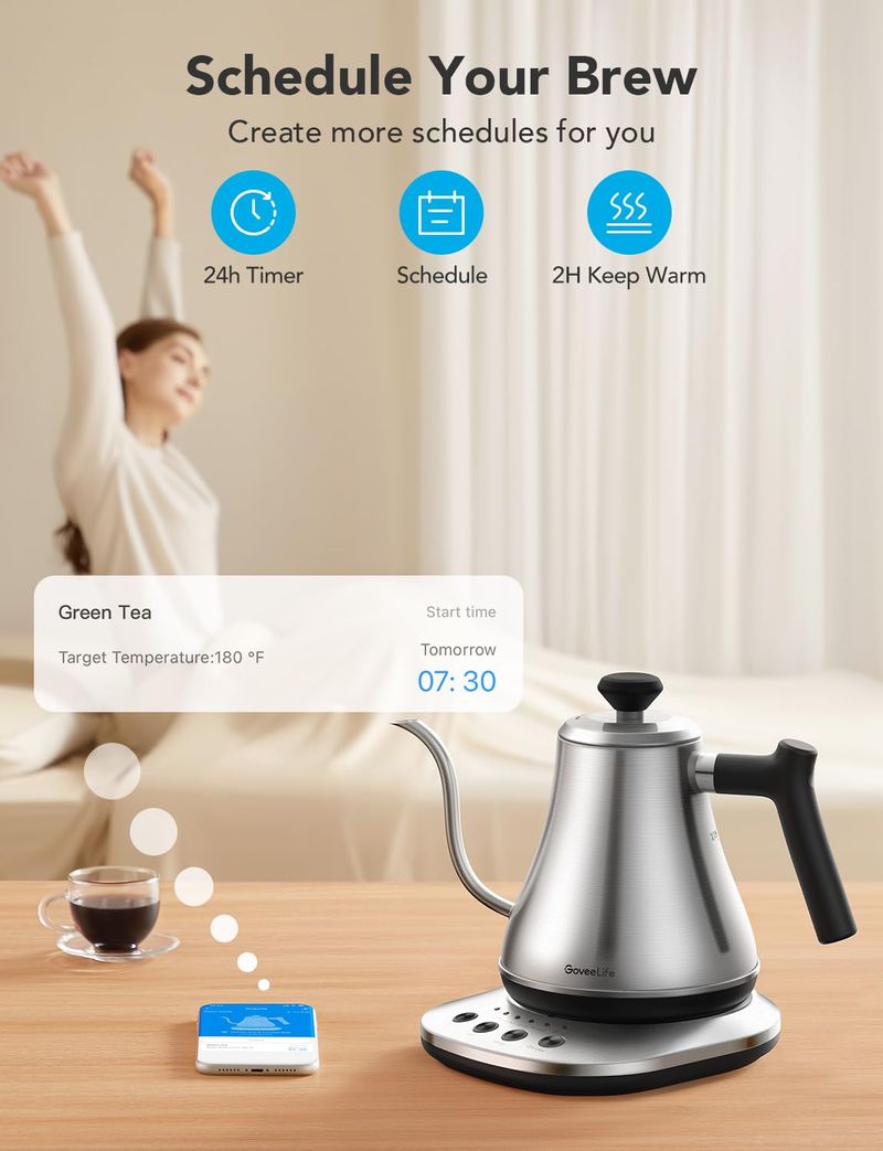 GoveeLife Hervidor eléctrico inteligente, hervidor de cuello de cisne WiFi de 0.8 L compatible con
