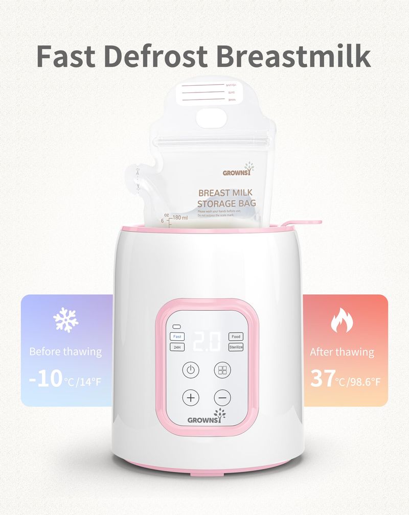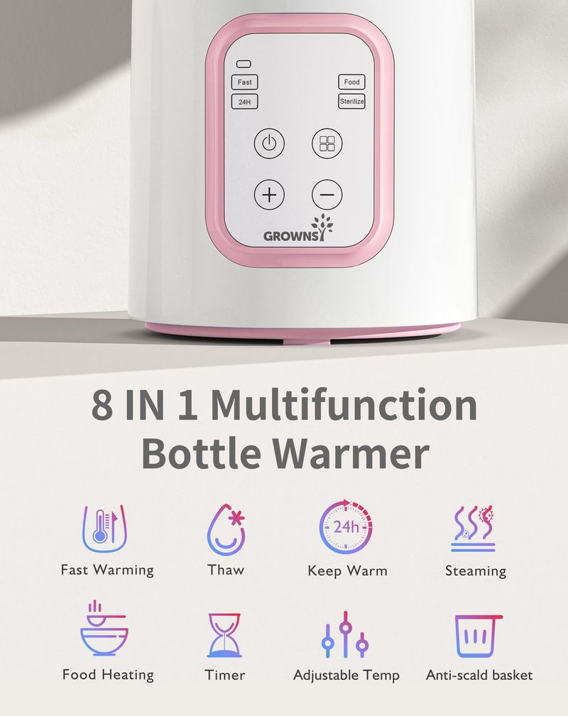 GROWNSY Calentador de biberones, calentador de leche para bebés 8 en 1 rápido con temporizador para