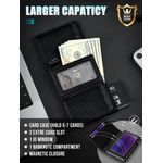 Privacidad y seguridad: después de las pruebas, nuestra cartera para tarjetas para hombre puede proteger tus tarjetas de los potentes lectores de chips RFID. Y la ranura de la cartera sigilosa cuidadosamente diseñada es buena para proteger tu información de privacidad.