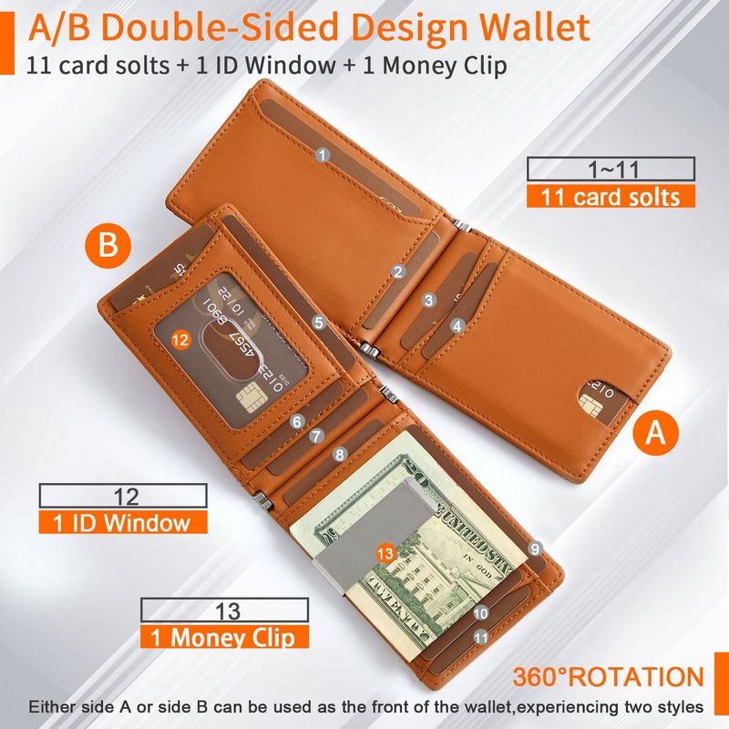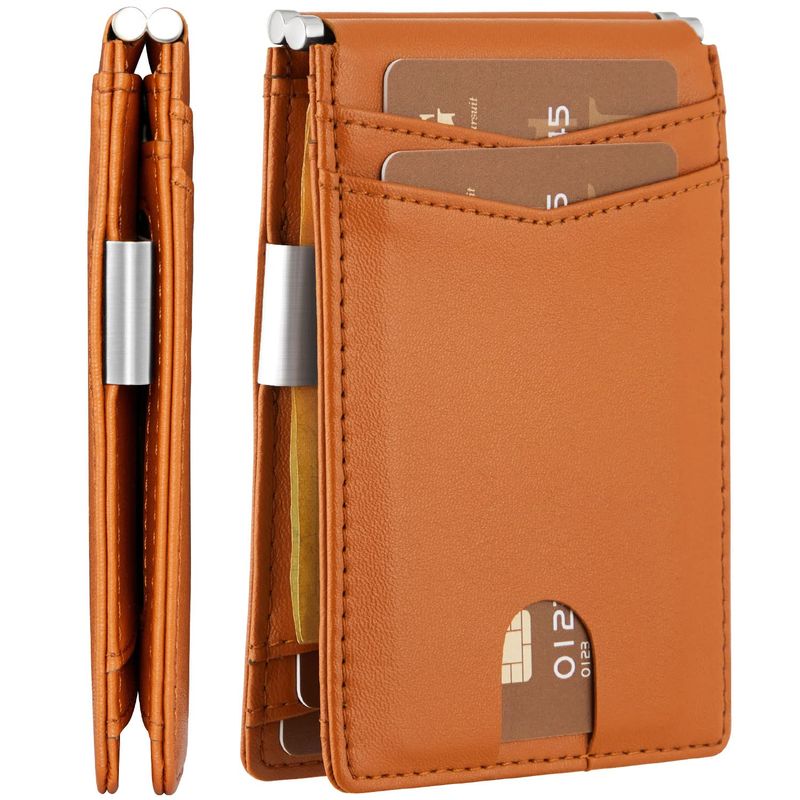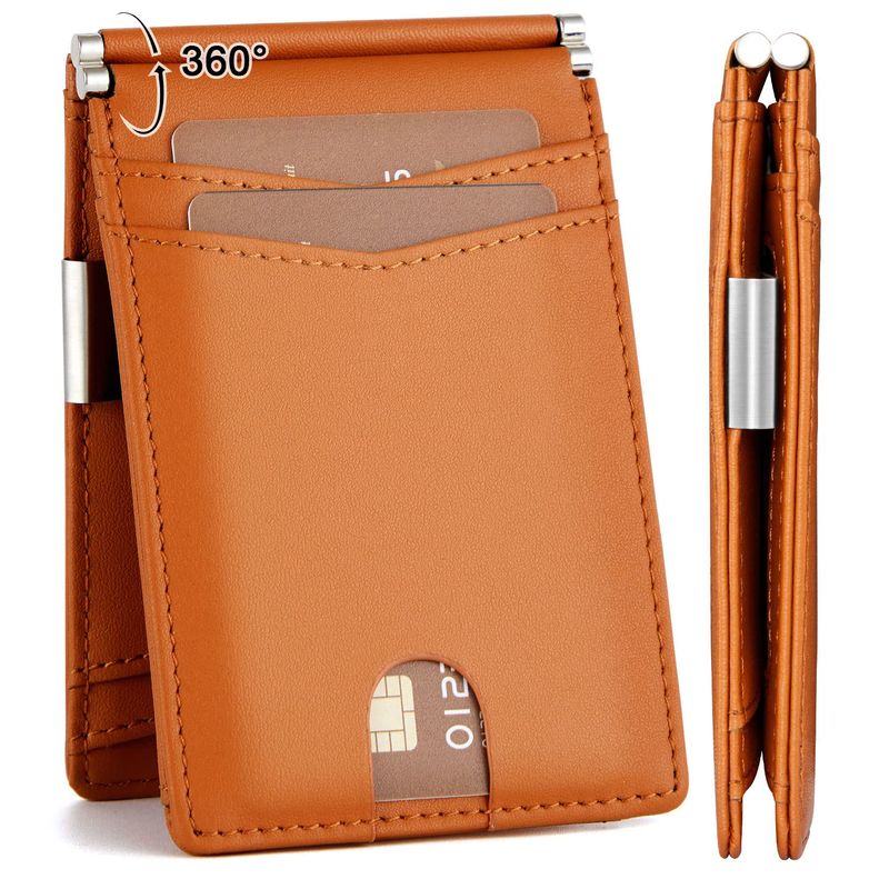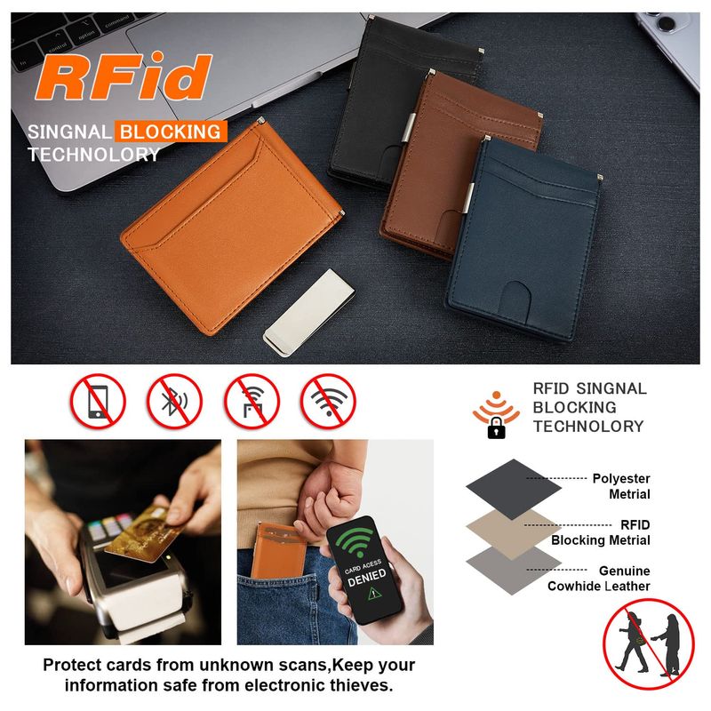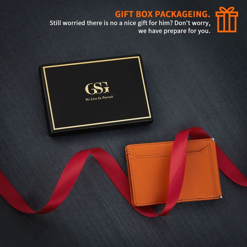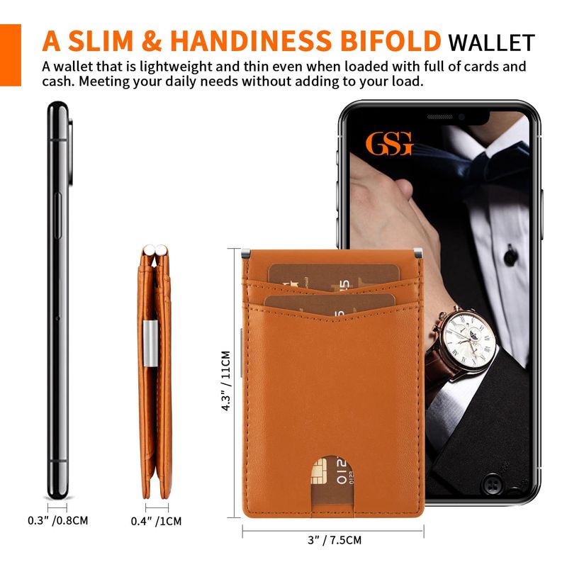 GSG Billeteras delgadas de piel con bloqueo RFID para hombre, con clip para dinero, tarjetero