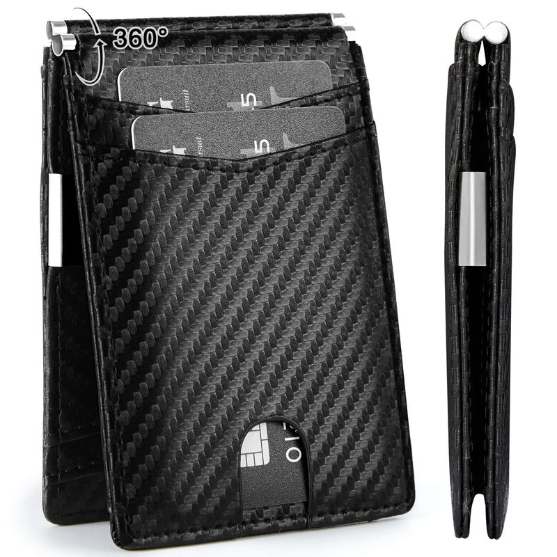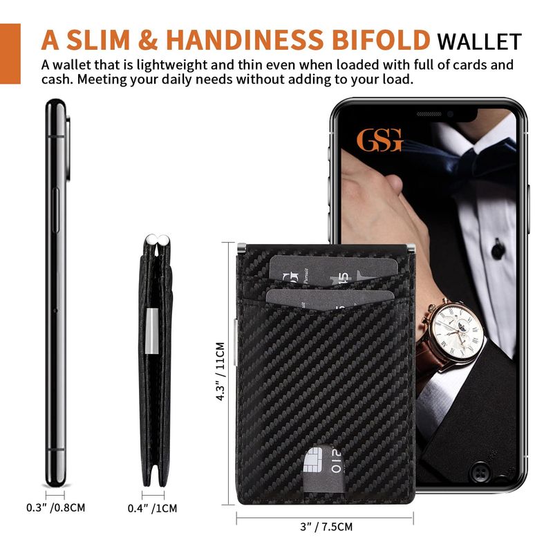 GSG Billeteras delgadas de piel con bloqueo RFID para hombre, con clip para dinero, tarjetero