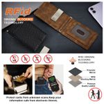 Privacidad y seguridad: después de las pruebas, nuestra cartera para tarjetas para hombre puede proteger tus tarjetas de los potentes lectores de chips RFID. Y la ranura de la cartera sigilosa cuidadosamente diseñada es buena para proteger tu información de privacidad.