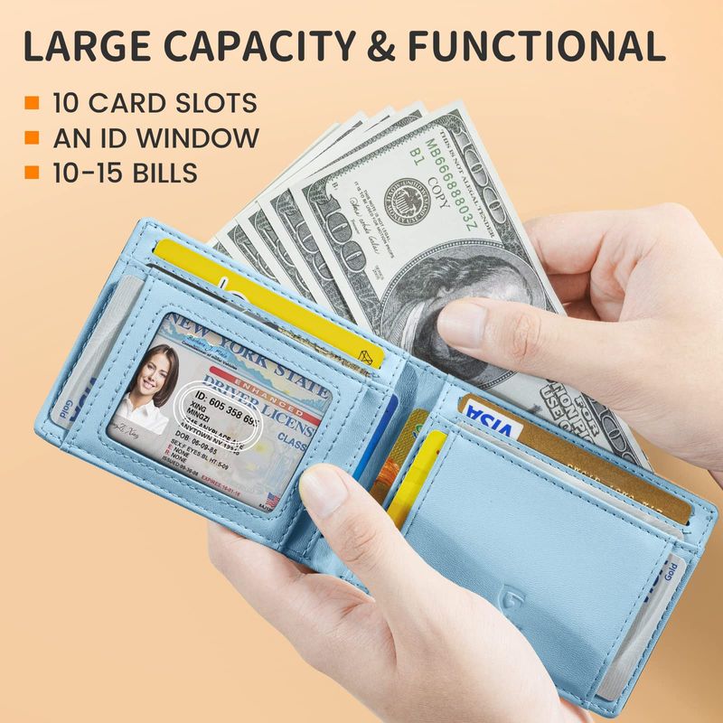 ?Alta capacidad?: el diseño de billetera doble plegable de GSOIAX para hombre tiene 11 ranuras para tarjetas, una bolsa de efectivo y una ventana de identificación, y también mantenemos el tamaño en una durabilidad de 4.5 x 3 x 0.5 pulgadas. Es duradero, resistente al desgaste y a los arañazos.