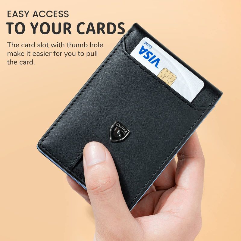 Protección de bloqueo RFID: la cartera delgada GSOIAX para hombre está equipada con tecnología avanzada de seguridad RFID, el forro de la cartera está hecho de un material compuesto de metal único diseñado específicamente para bloquear señales RFID a 13.56 MHz o más, protegiendo la valiosa información almacenada en el chip RFID de escaneos no autorizados.
