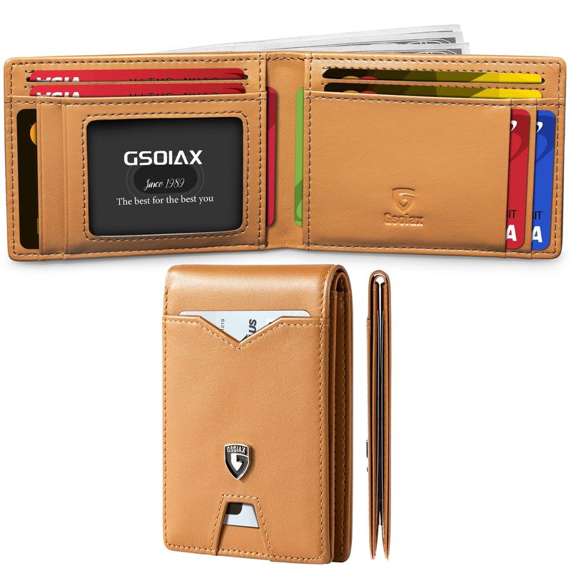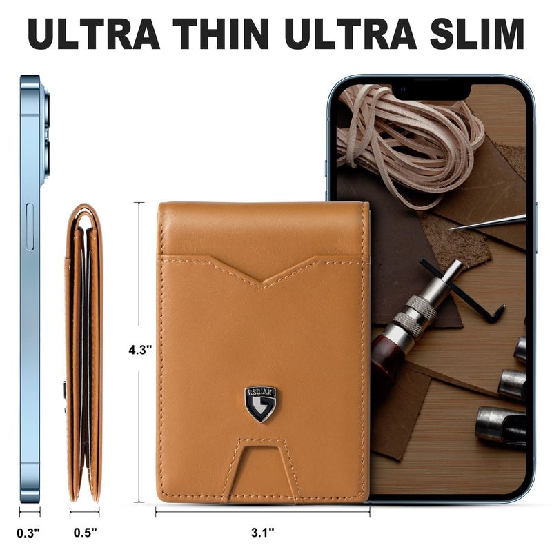GSOIAX Billetera delgada para hombre, minimalista, de piel auténtica, fibra de carbono, bloqueo
