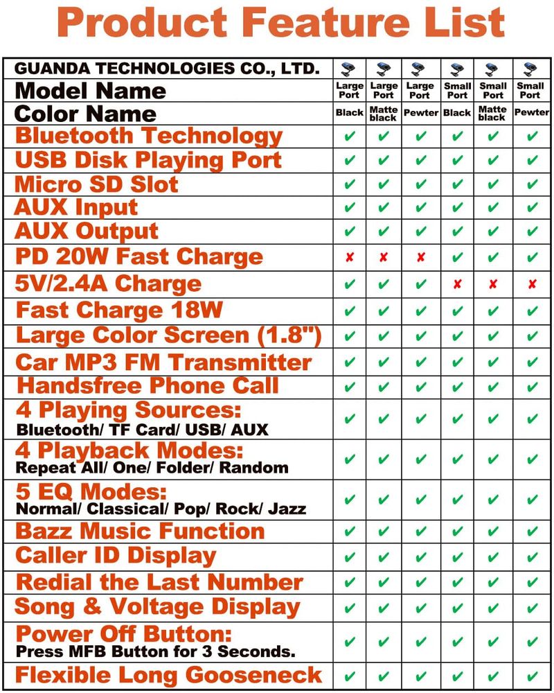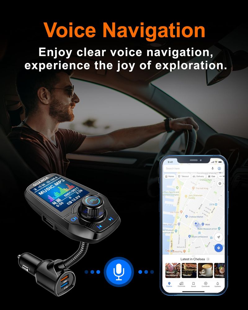 Guanda - Transmisor FM Bluetooth para automóvil, adaptador de coche Bluetooth, reproductor de MP3, 4