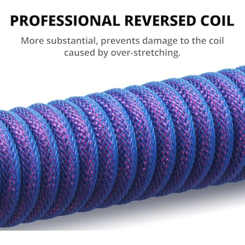GUNMJO PRO CUSTOM - CABLE USB C EN ESPIRAL PARA TECLADO MECáNICO DE VIDEOJUEGOS, CABLE CON DOBLE MANGA Y CONECTOR EXTRAíBLE TIPO AVIACIóN, 5 PIES, USB-C A USB-A, NEGRO
