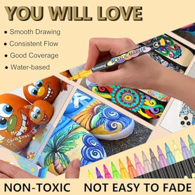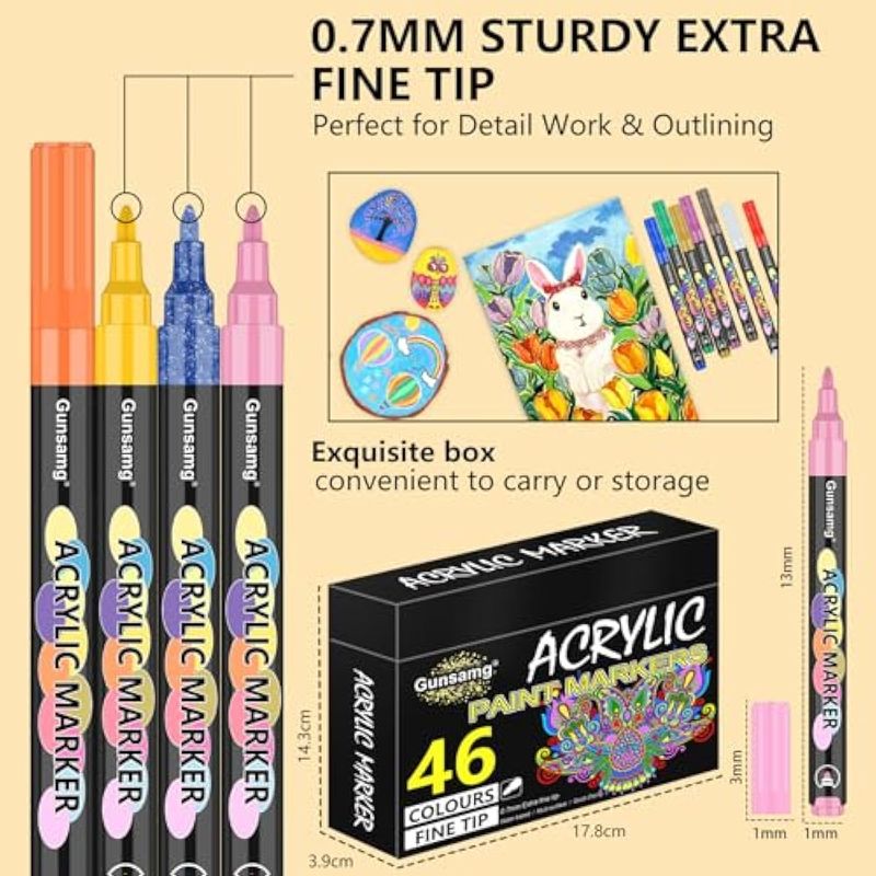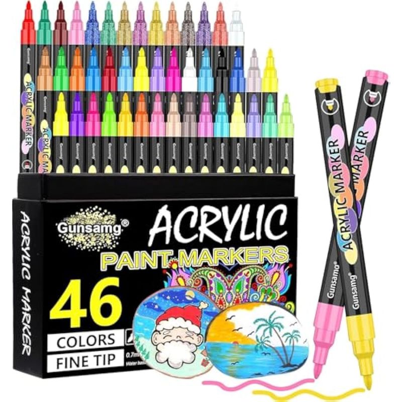Gunsamg Bolígrafos de pintura acrílica de 46 colores, punta extrafina, marcadores de pintura