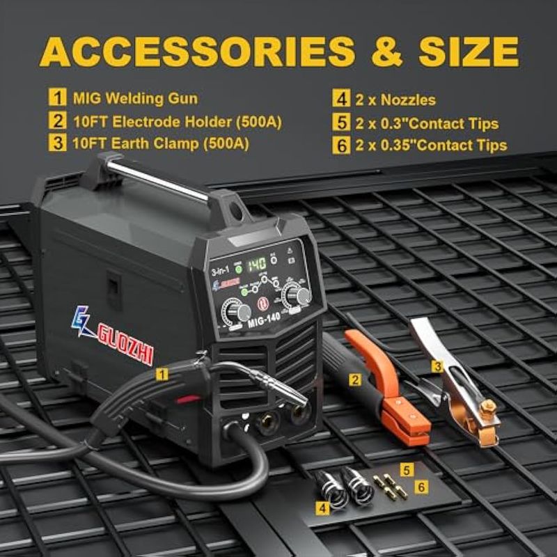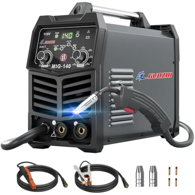 GZ GUOZHI SOLDADOR MIG DE 140 AMPERIOS, NúCLEO DE FLUJO MIG/STICK/LIFT TIG 3 EN 1, SOLDADOR SIN GAS DE 110 V CON SINERGIA, SOLDADOR INVERSOR IGBT PORTáTIL