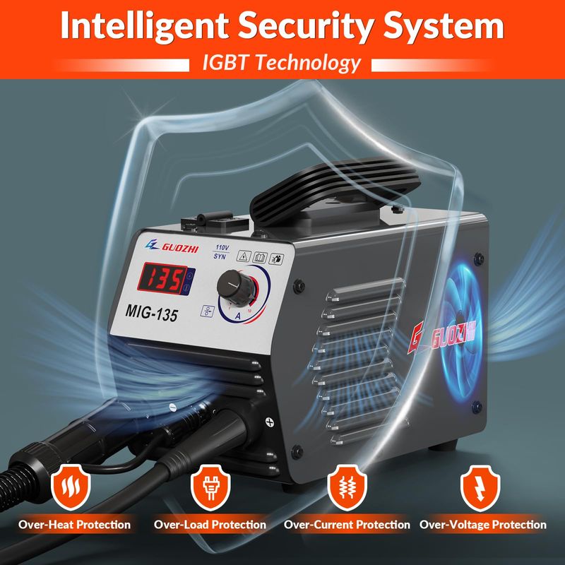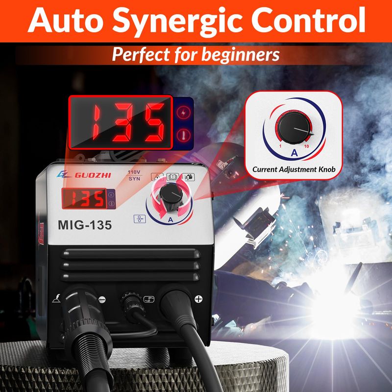 Control sinérgico: el soldador GZ GUOZHI MIG tiene un diseño unitario MIG, cambio automático del voltaje y la velocidad de alimentación del cable ajustando el amperaje. Es fácil de operar tanto para principiantes como para soldadores profesionales. También puedes cambiar al modo manual y ajustar los parámetros de la máquina libremente.