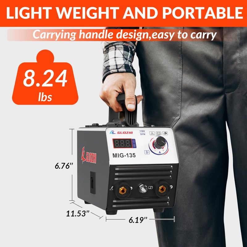 ?Garantía de seguridad y diseño portátil?: esta máquina de soldadura MIG tiene protección contra sobrecalentamiento, protección contra sobrecorriente, protección contra sobrevoltaje y protección contra sobrecarga, utiliza más seguridad. Debido al pequeño tamaño y peso ligero, es muy fácil de llevar, ideal para reparaciones al aire libretrabajos aéreos.
