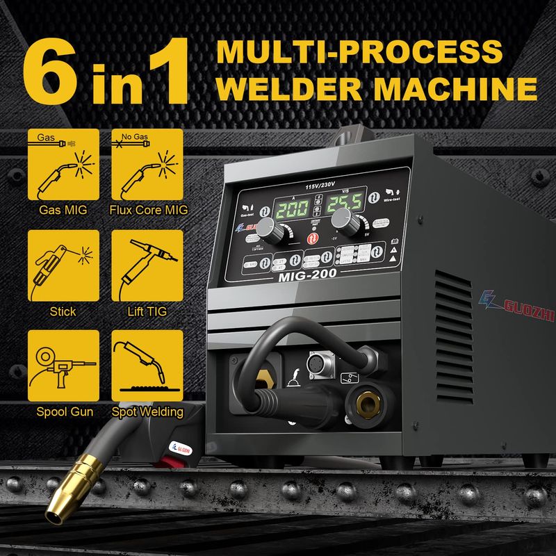 Soldador de múltiples roces: máquina soldadora GZ GUOZHI 3 en 1. Digital FLUX MIGARCLift TIG. Características dinámicas únicas que controlan el ciclo, arco estable de la soldadura, lesssplash, aspecto agradable, alta eficiencia de la soldadura.
