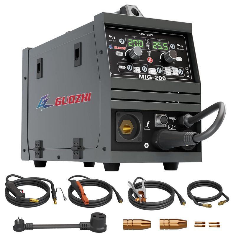 Control sinérgico: el soldador GZ GUOZHI MIG tiene un diseño unitario MIG, cambio automático del voltaje y la velocidad de alimentación del cable ajustando el amperaje. Es fácil de operar tanto para principiantes como para soldadores profesionales. También puedes cambiar al modo manual y ajustar los parámetros de la máquina libremente.