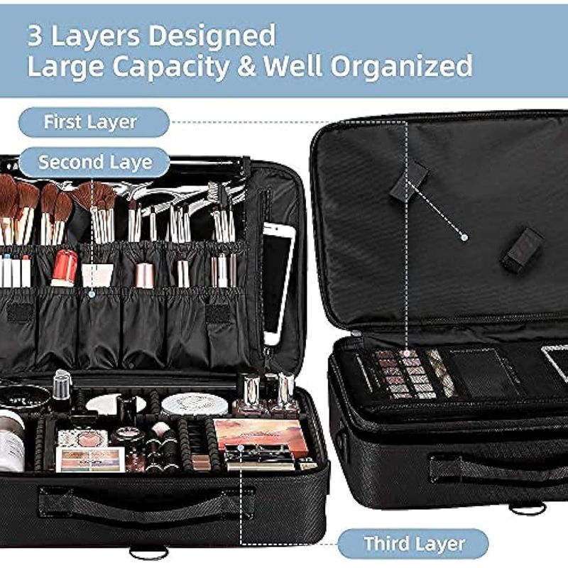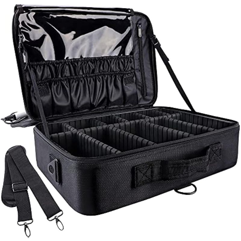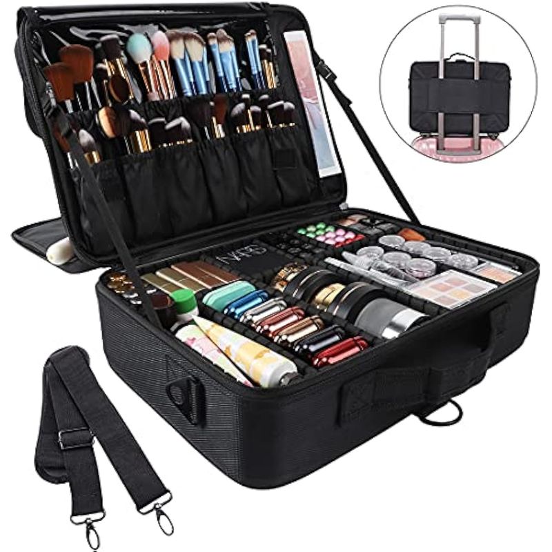 GZCZ ESTUCHE DE VIAJE PARA MAQUILLAJE, PROFESIONAL, 16 PULGADAS, GRAN CAPACIDAD, ORGANIZADOR DE BROCHAS, PORTáTIL, PARA ARTISTAS, DIVISORES AJUSTABLES, CORREA PARA HOMBRO, NEGRO