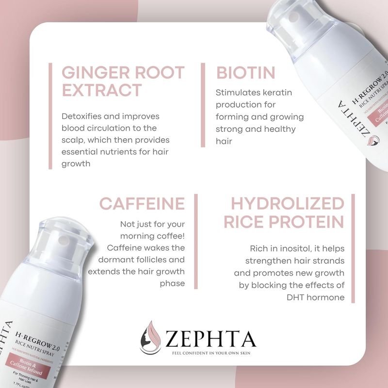 H-Regrow - Spray para el crecimiento del cabello, con agua de arroz, biotina, aloe vera, cafeína y