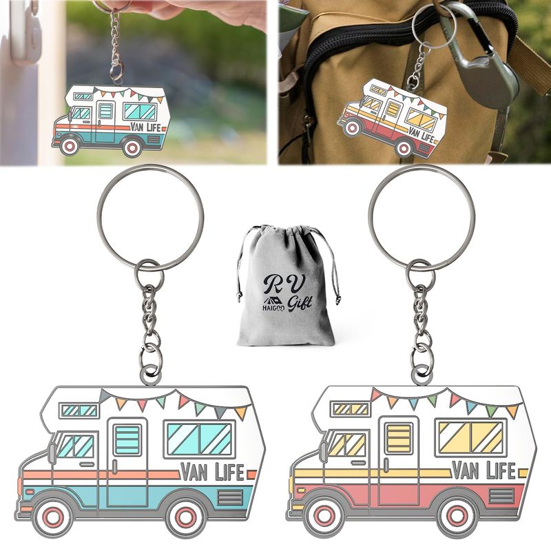 HOGARINDUMENTARIA Y ACCESORIOSHaigoo Paquete de 2 llaveros 3D para cámper, regalos de campamento para mujeres, hombres, campistas,