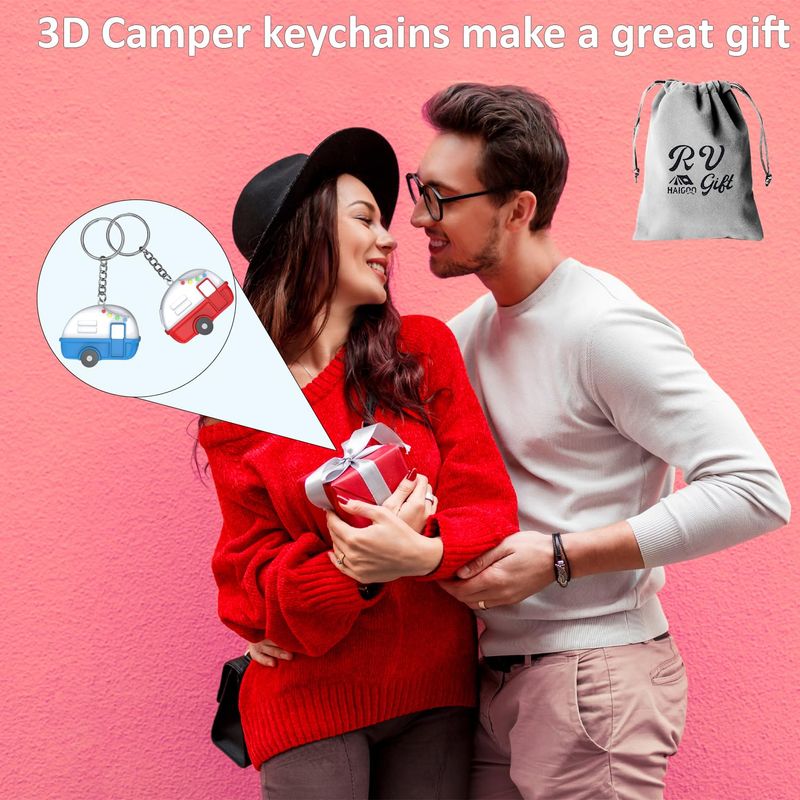 HOGARINDUMENTARIA Y ACCESORIOSHaigoo Paquete de 2 llaveros 3D para cámper, regalos de campamento para mujeres, hombres, campistas,