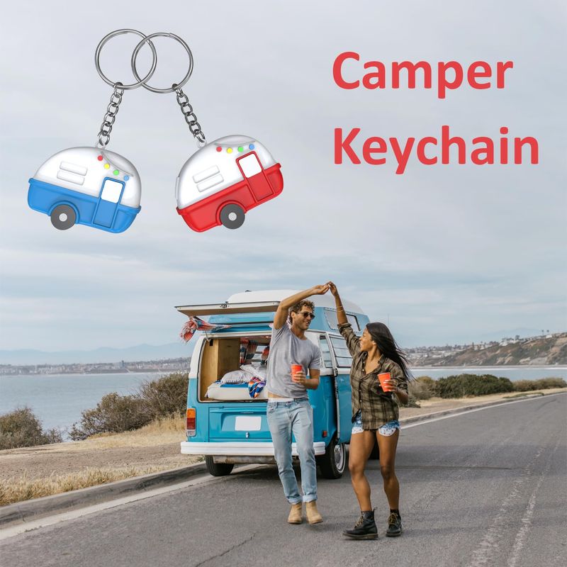 Haigoo Paquete de 2 llaveros 3D para cámper, regalos de campamento para mujeres, hombres, campistas,