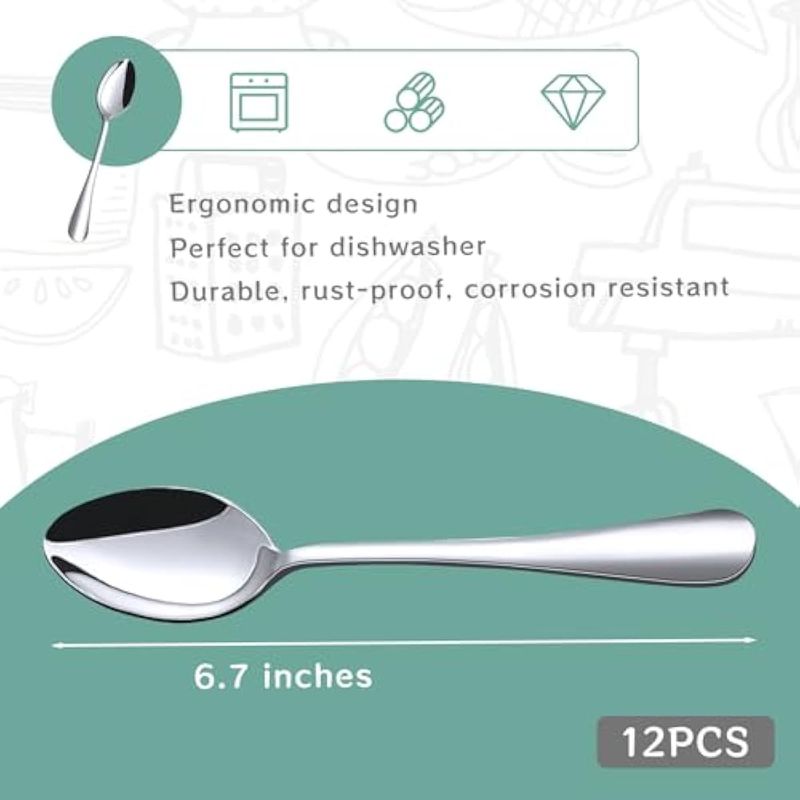 HAKSEN Cucharas de acero inoxidable, cucharas de té, cubiertos de postre, cucharas de café para el